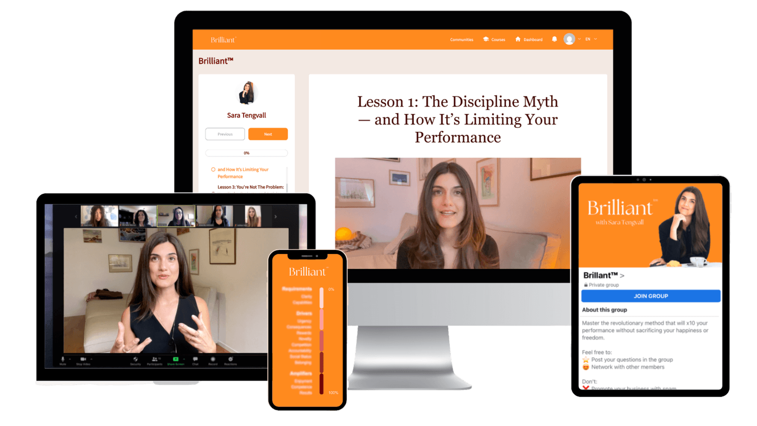 Bring your challenges to live calls for direct coaching and learn by observing others apply the Brilliant™ method to real situations so you spot exactly where you're working against yourself.
